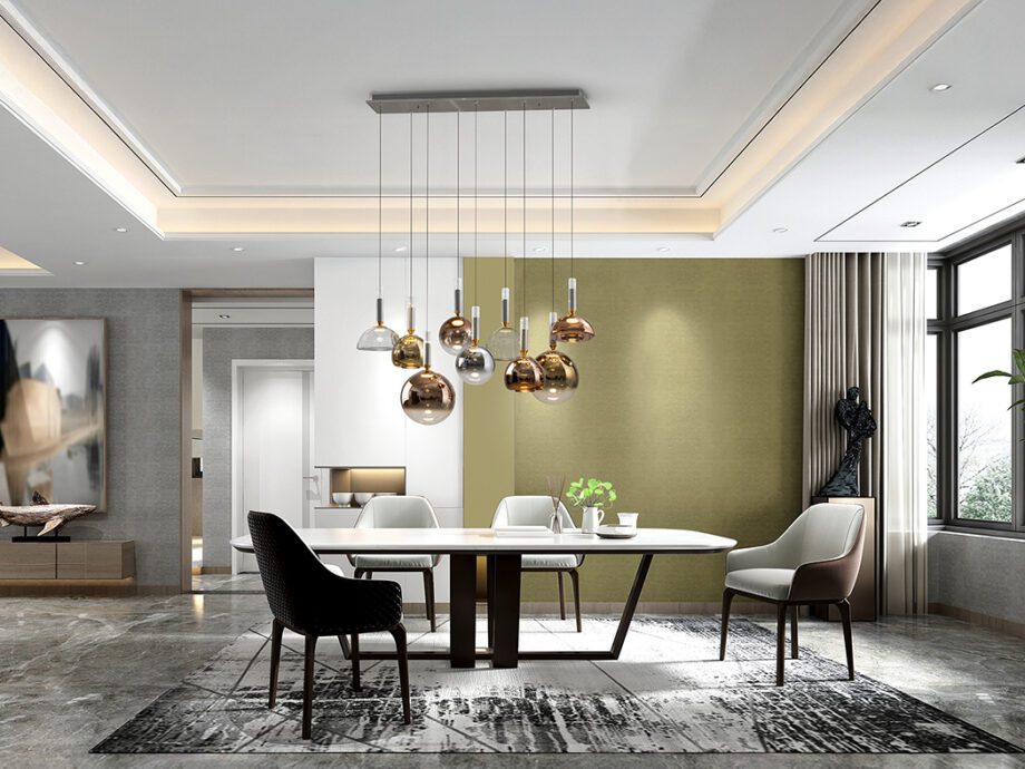 Lámpara en línea CHARLIZE gris oscuro de 9 colgantes colores con 54W Led con mando Schuller