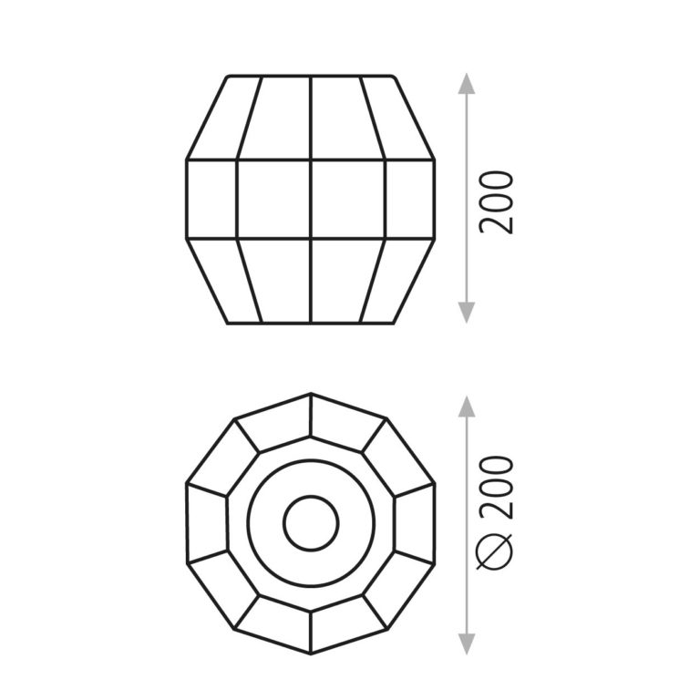 Medidas: 200 mm altura x 200 apenas se aprecia soporte metálico para sujección al techo.