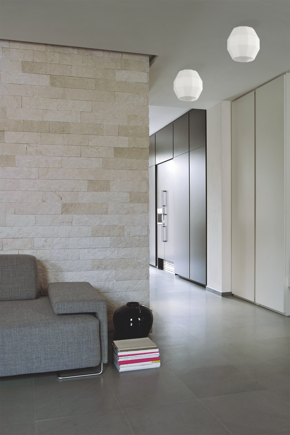 Plafón cristal opal blanco con abertura inferior para fácil limpieza y sustitución de bombilla.