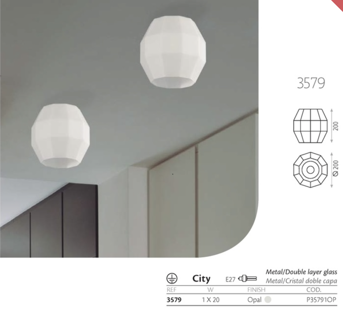 CITY – Plafón cristal opal E27 diseño geométrico 3579 Acb Iluminación - STOCK EN TIENDA