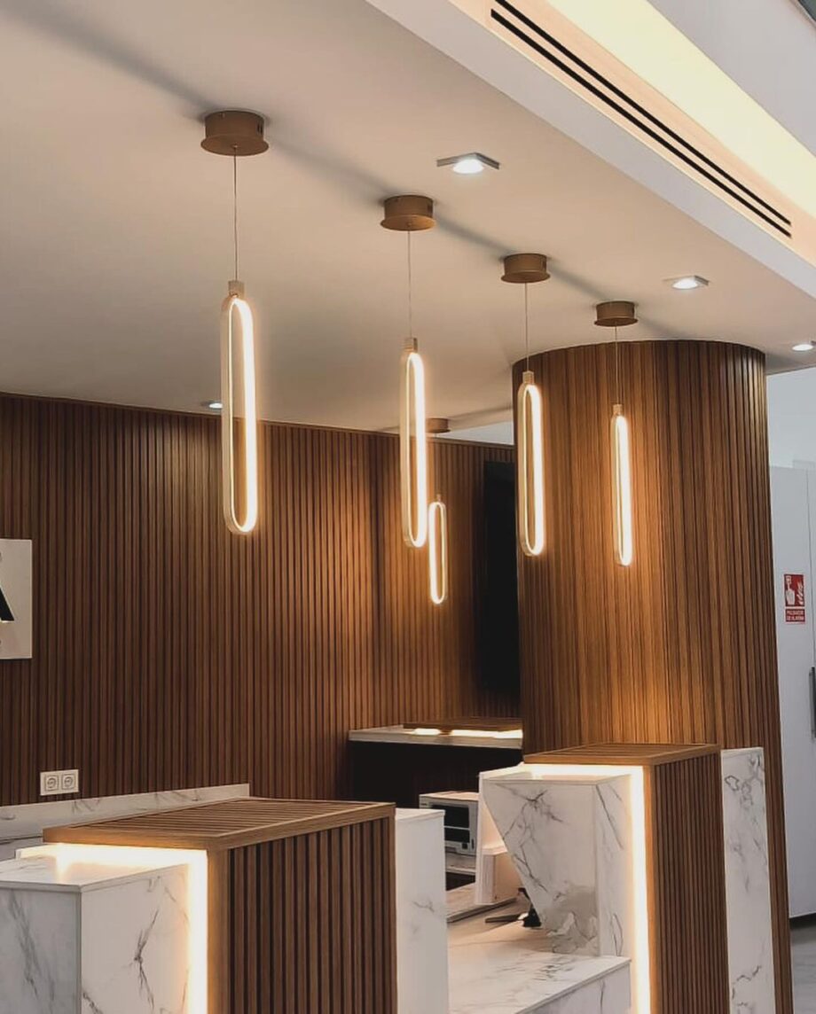 Tiras con iluminación Led ocultas por difusores de silicona opal.
