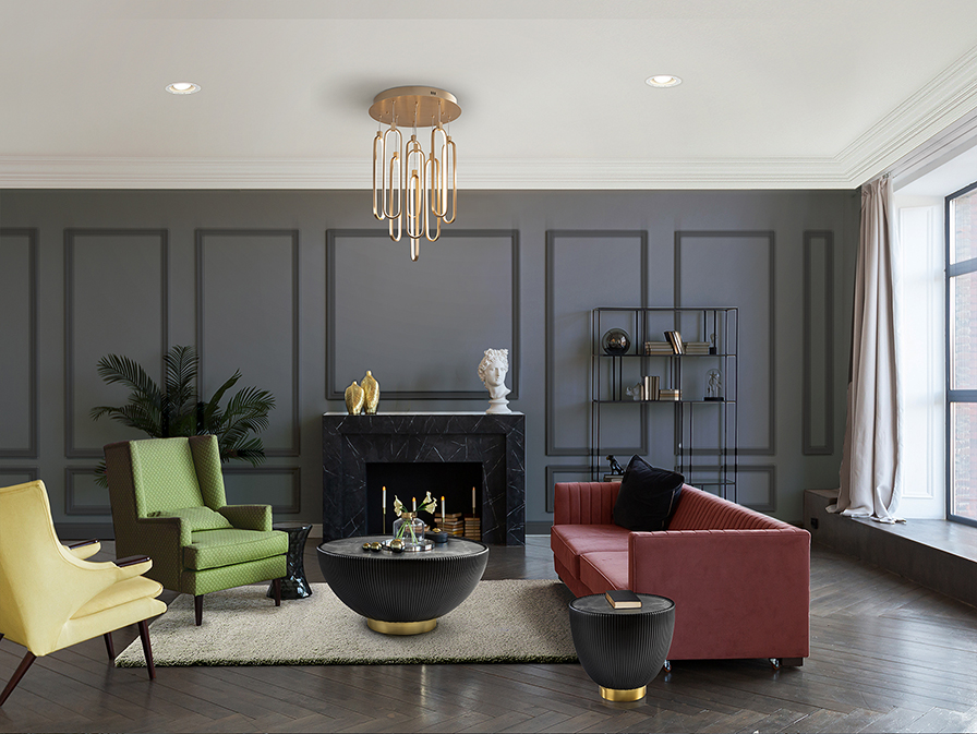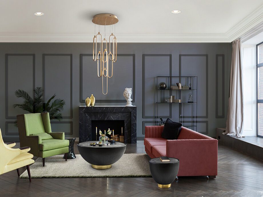 COLETTE – Lámpara base redonda Oro rosa de 9 colgantes con 117w Led dimable