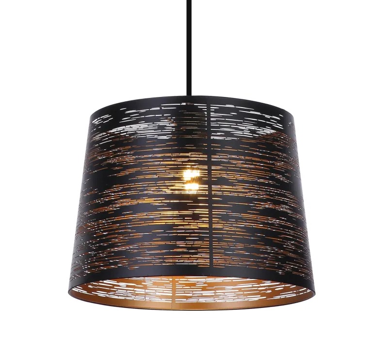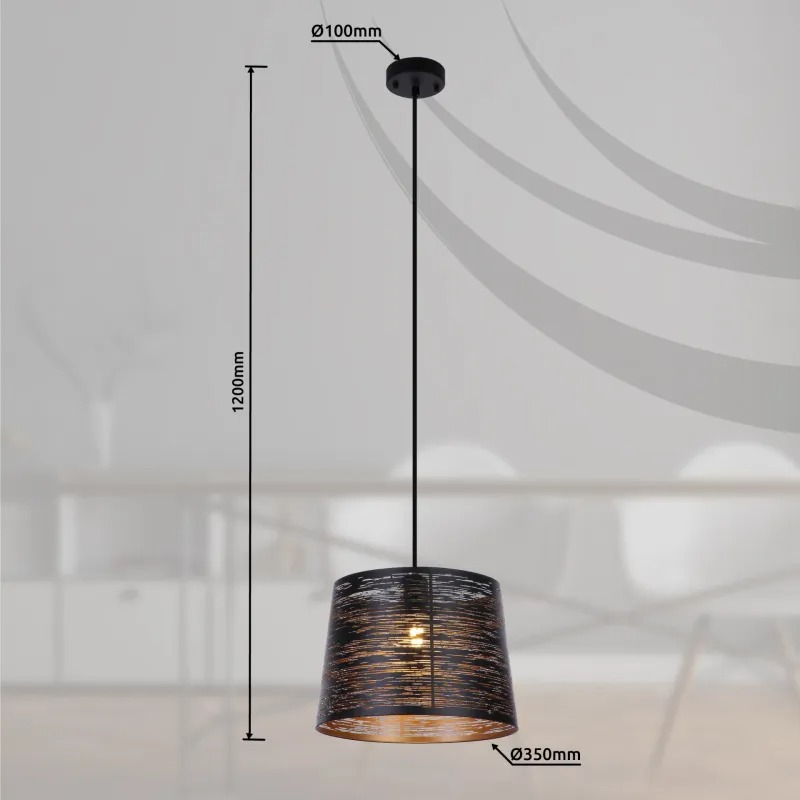 Colgante BECCI negro con interior dorado para bombilla E27 con cable negro Globo Lighting