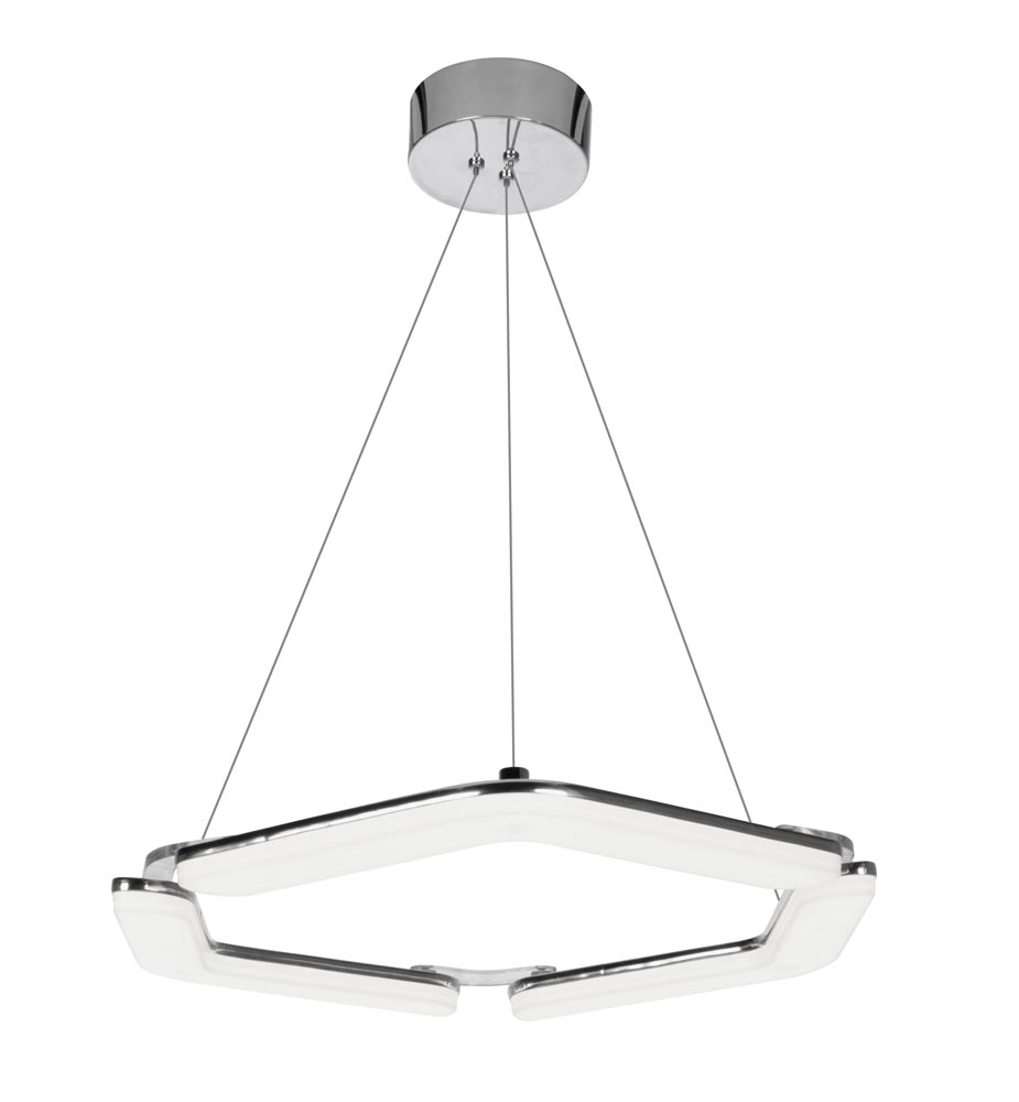 Colgante Led Boomerang, en acabado cromo con difusor pvc opal.
