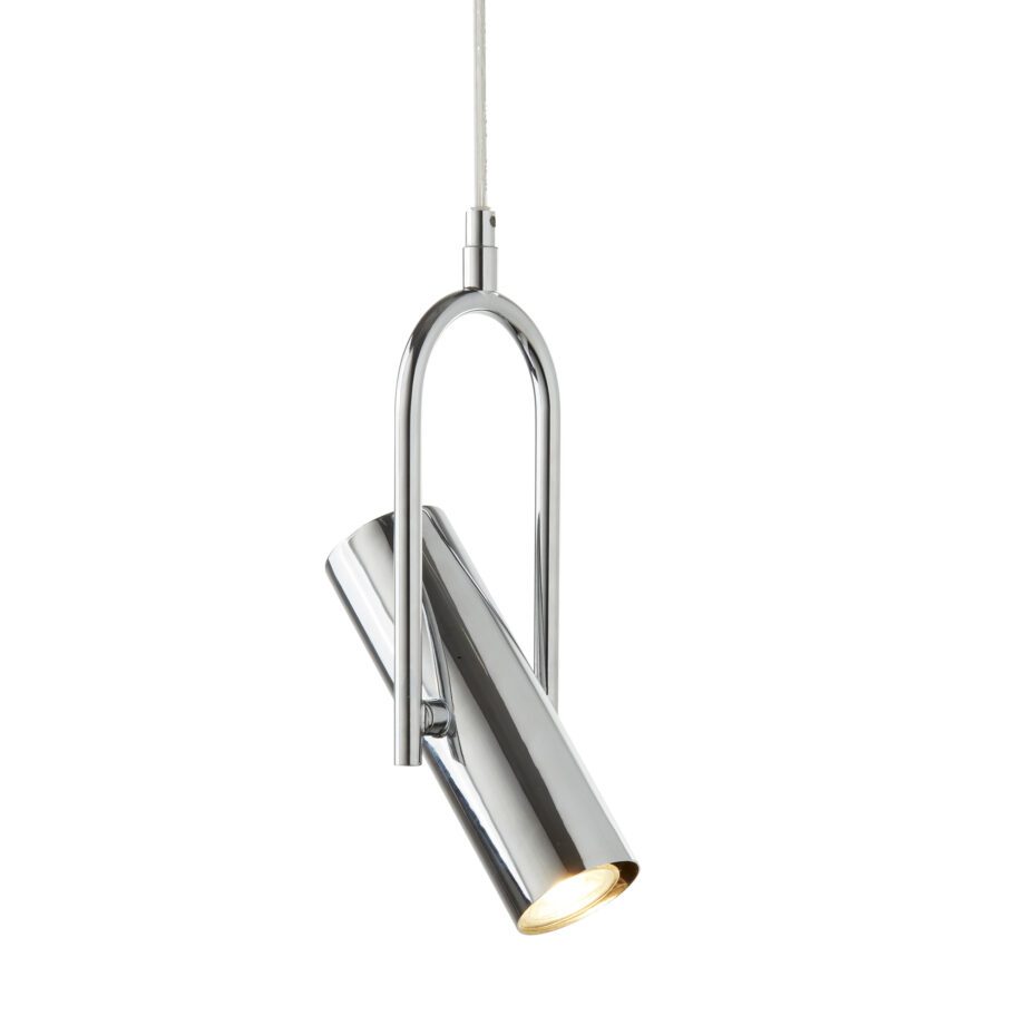 El vástago largo y delgado dirige toda la atención hacia el cuerpo ajustable de la conexión. Este colgante es liso y cromado, lo que lo hace adecuado para cualquier hogar moderno.