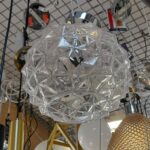 Cristal irregular con instalación de cable textil gris con metal en terminación cromo brillo.