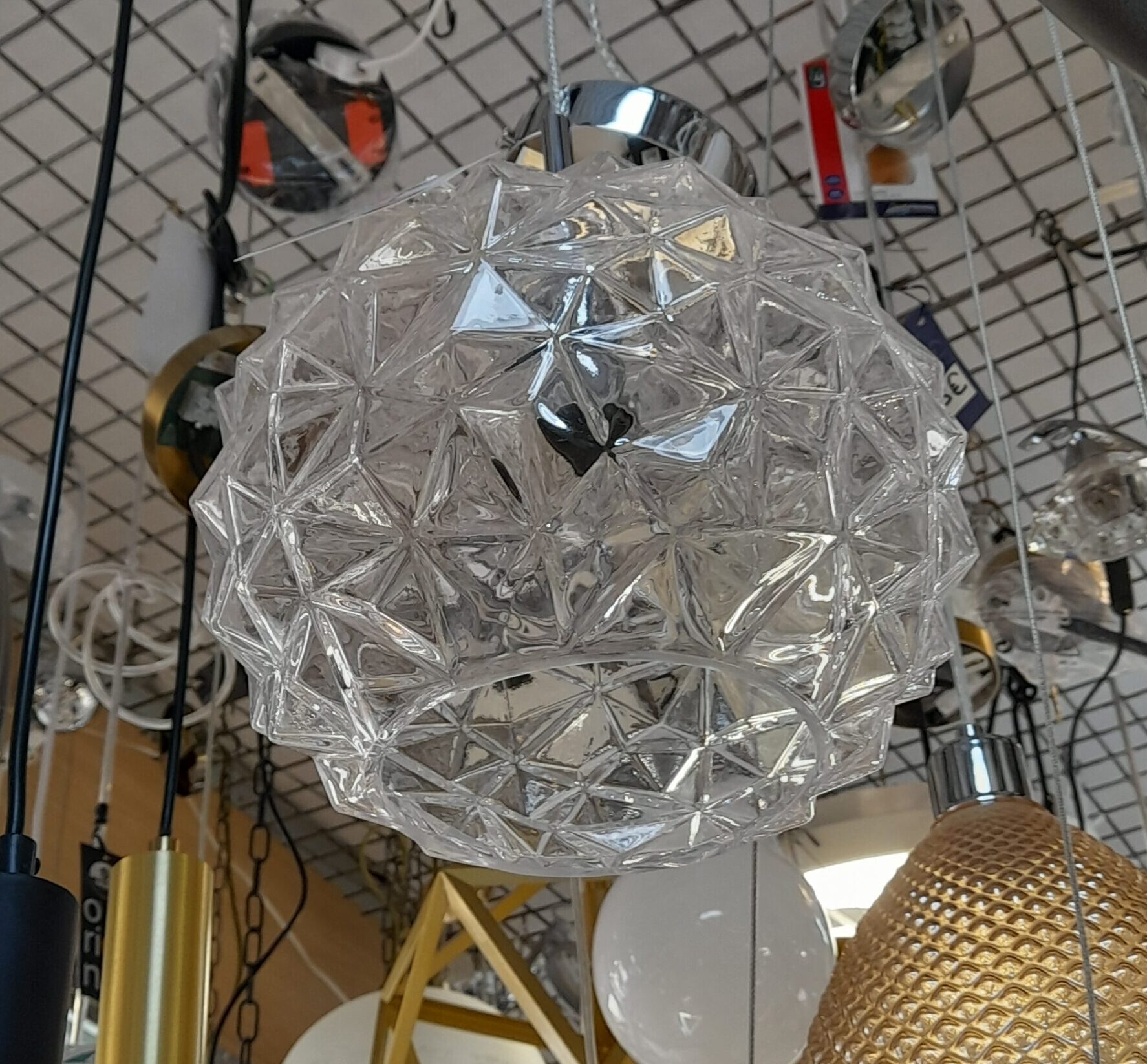 LOMBARDIA: Colgante cromo y cristal transparente para bombilla E27, 15cm, Ref. 813 Marinisa. STOCK DISPONIBLE EN TIENDA