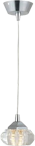Colgante mini con base cromo y tulipa tallada en cristal transparente.