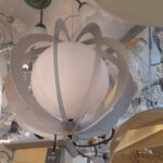 Esfera cristal opal blanco con rejilla gris con diámetro total 39 y 35 altura, mas tensor para regular la altura de instalación.