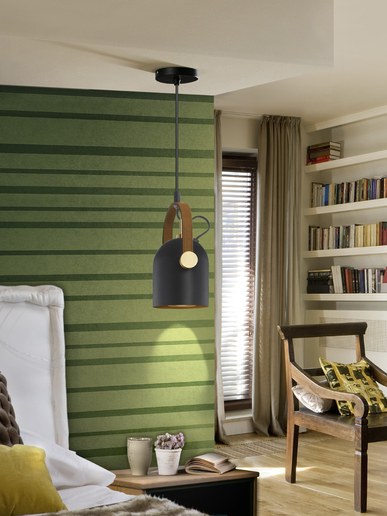 Colgante individual ADAME negro con interior oro de bombilla E14 Led Schuller