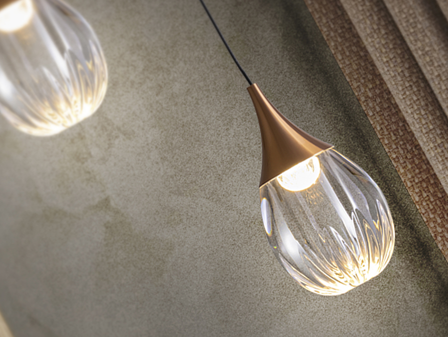 Colgante individual CORINA negro con detalle cobre y cristal transparente de 5W Led integrado Schuller.