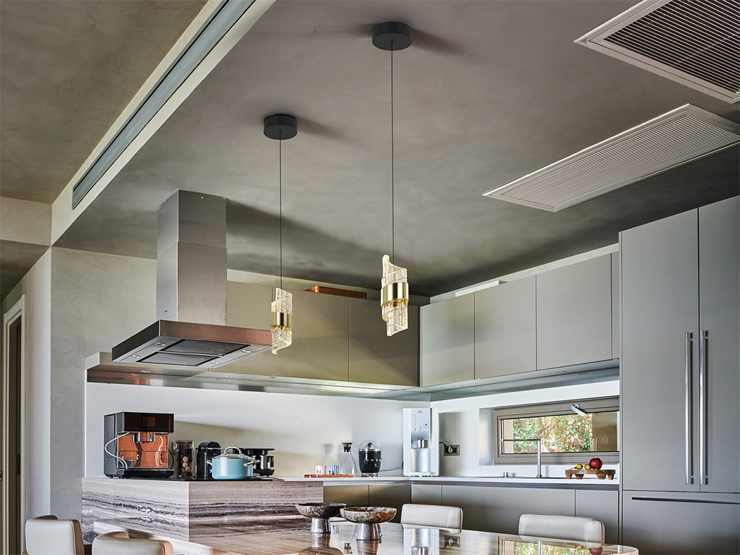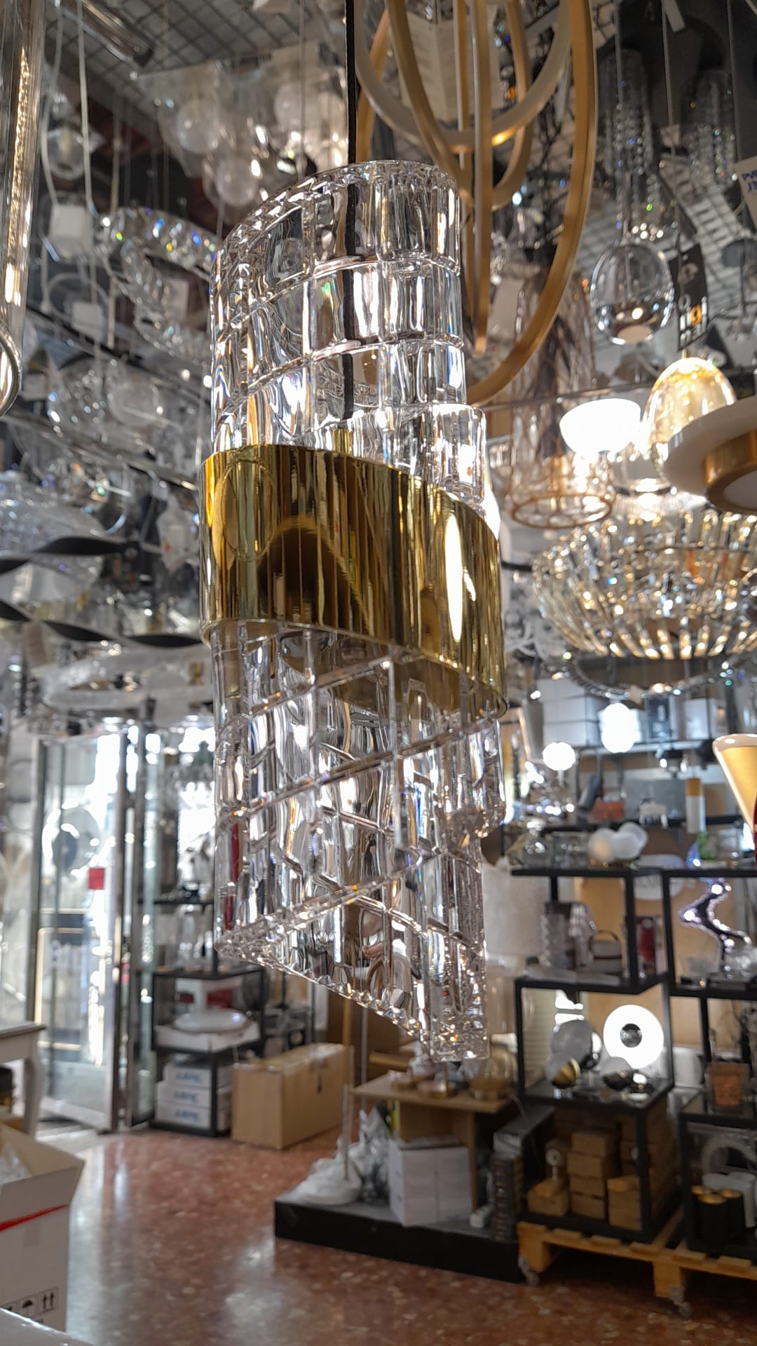 Lámpara en línea ILIADA de 5 luces colgantes con detalle en oro brillo con 35W Led