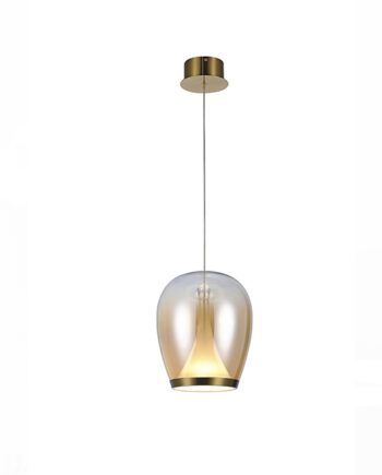 Colgante individual SUSPIRO dorado y cristal ámbar de 15W Led integrado Schuller
