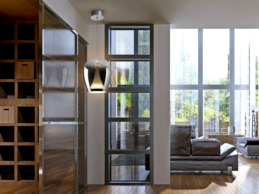 Colgante individual SUSPIRO grande cromo y cristal smoke de 20W Led integrado Schuller