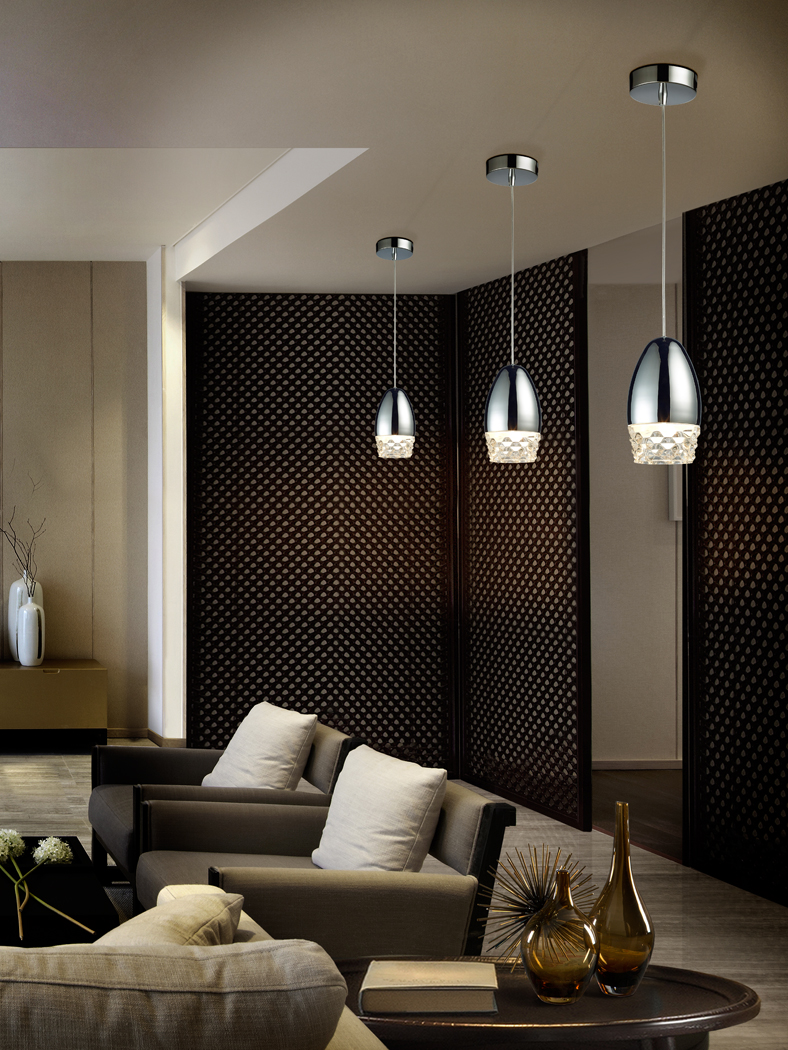 Colgante individual de 1 luz, realizada en metal acabado cromo, con tulipa de cristal  y regulable en altura con cable transparente.