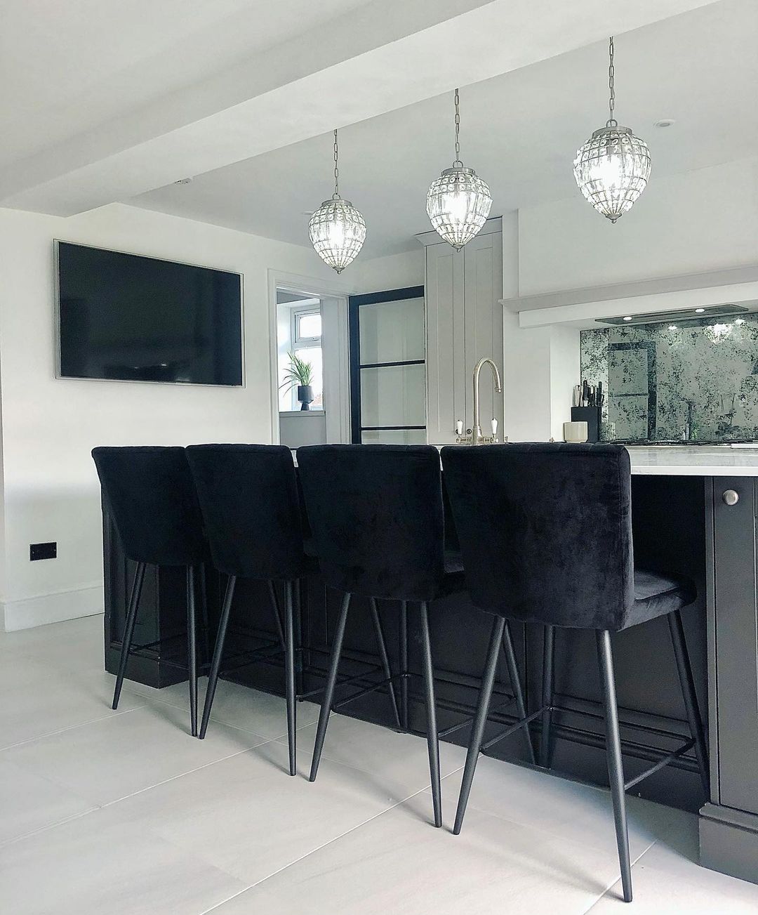 Esta luz colgante de latón antiguo con botones de cristal brilla maravillosamente cuando la luz está encendida.