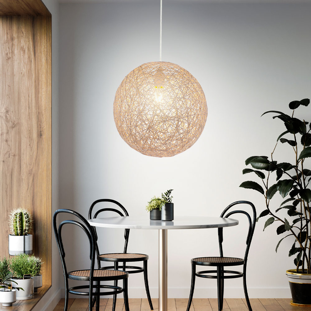 La lámpara colgante Coropuna impresiona con su hermoso aspecto esférico. Una bola de malla de papel beige con un diámetro de 44 cm cuelga de la base de plástico blanco. Hay un casquillo E27 (máx. 60 W) en la bola, que puede equiparse con una bombilla de su elección. Recomendamos bombillas LED por su longevidad y ahorro de energía.