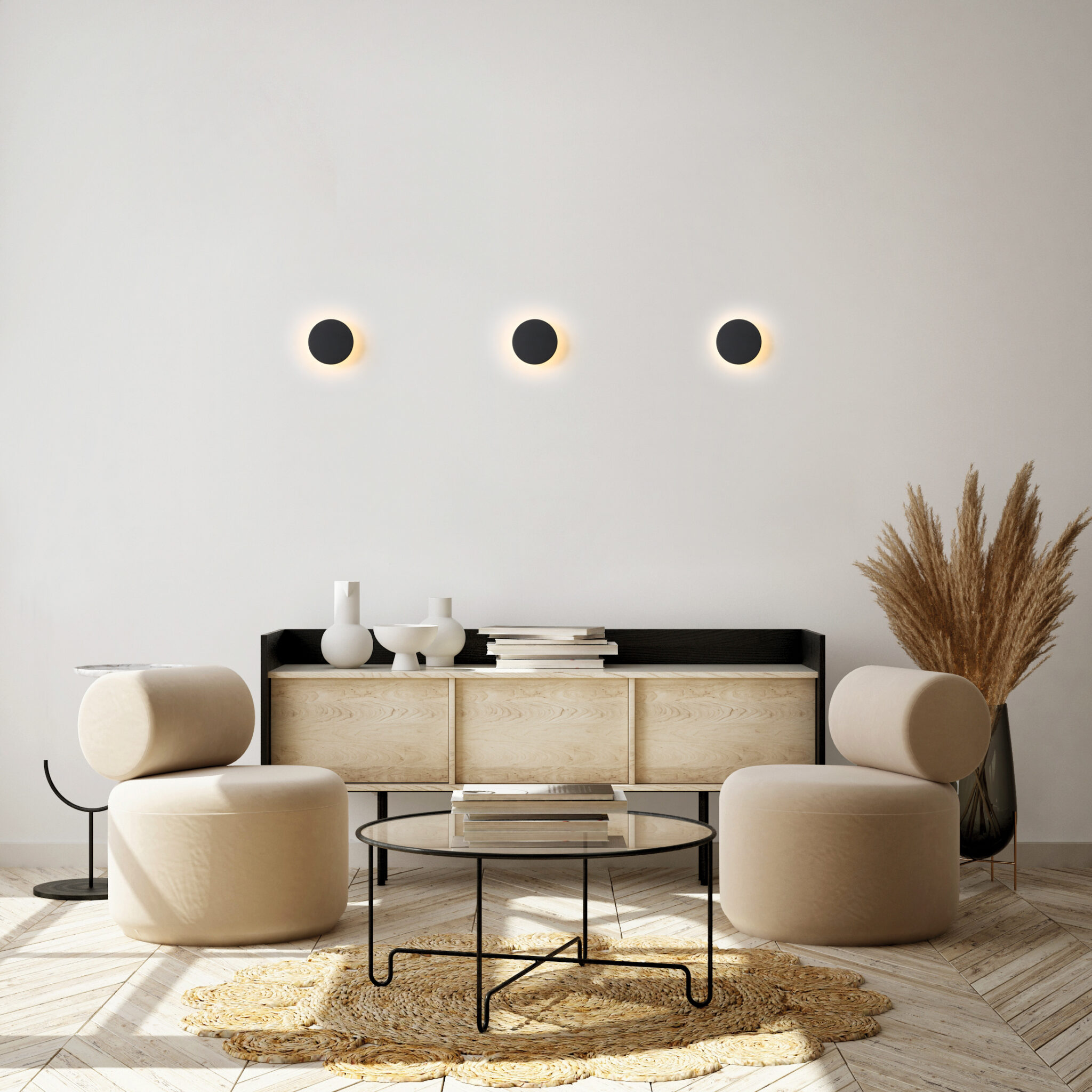 CORVUS: Aplique Redondo diseño Negro, 7,5w Led luz cálida, Ip 54, A3945001N Acb Iluminación. 12cm diámetro.