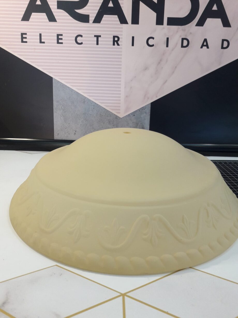 Cristal repuesto plafón redondo curvado en color tostado y greca.
