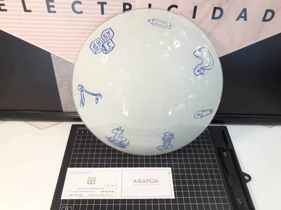 Cristal repuesto: redondo curvado plafones Dibujos infantiles azul. Medida de 25cm. STOCK DISPONIBLE EN TIENDA