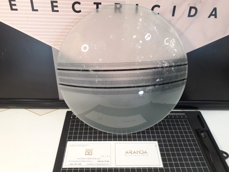 Cristal repuesto: redondo curvado plafones Rayas negras. Medidas de 25 cm. STOCK DISPONIBLE EN TIENDA