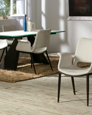 Silla DEVANY tapizada en terciopelo piedra y patas negro mate Schuller.