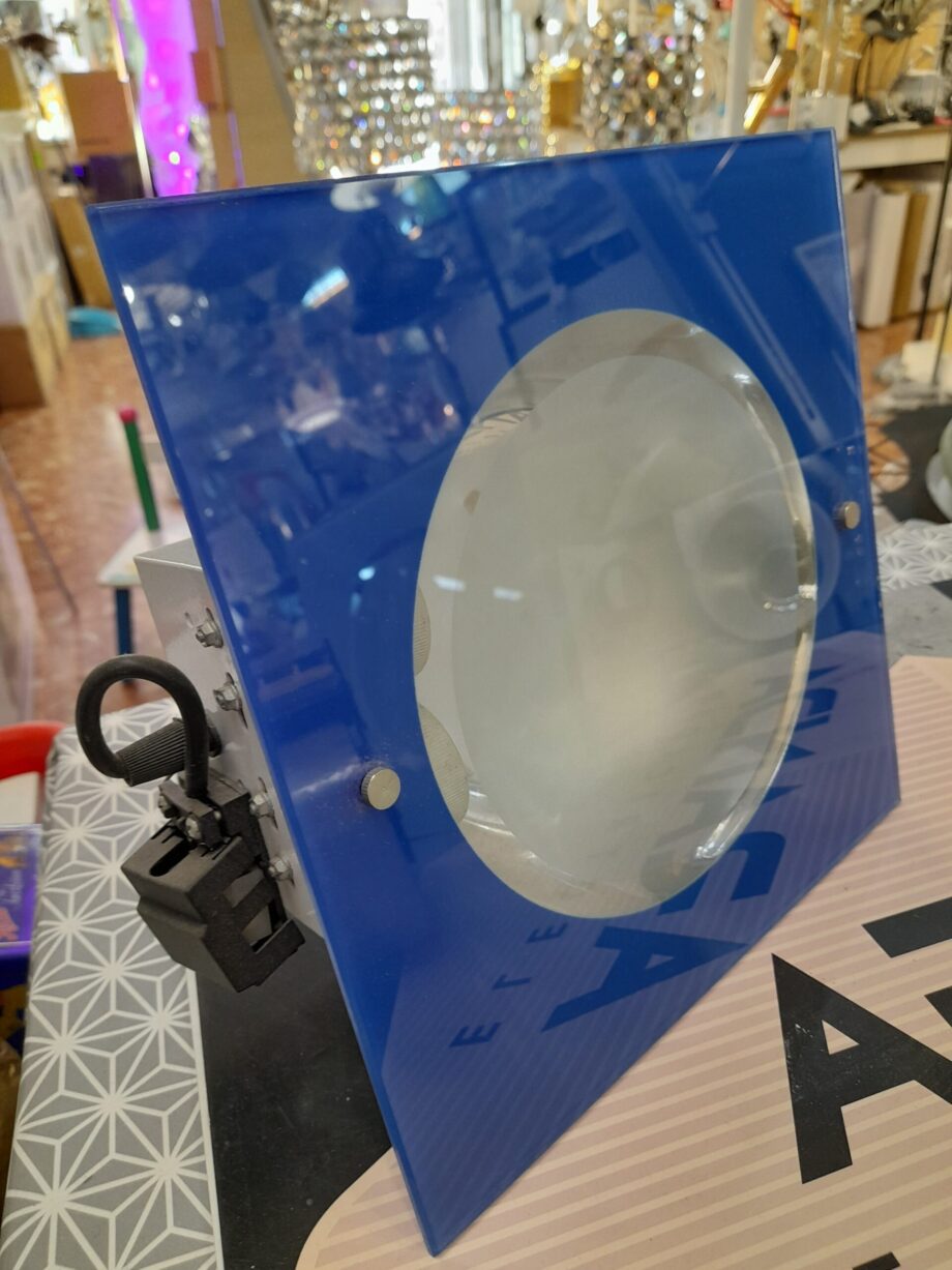 Downlight empotrar cristal azul brillo para bombillas E27, 110 Incolamp. STOCK DISPONIBLE EN TIENDA