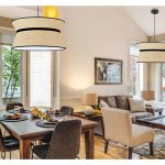 Colgante de dos volúmenes con tela Banana, material imitación a rejilla, con vivo negro.