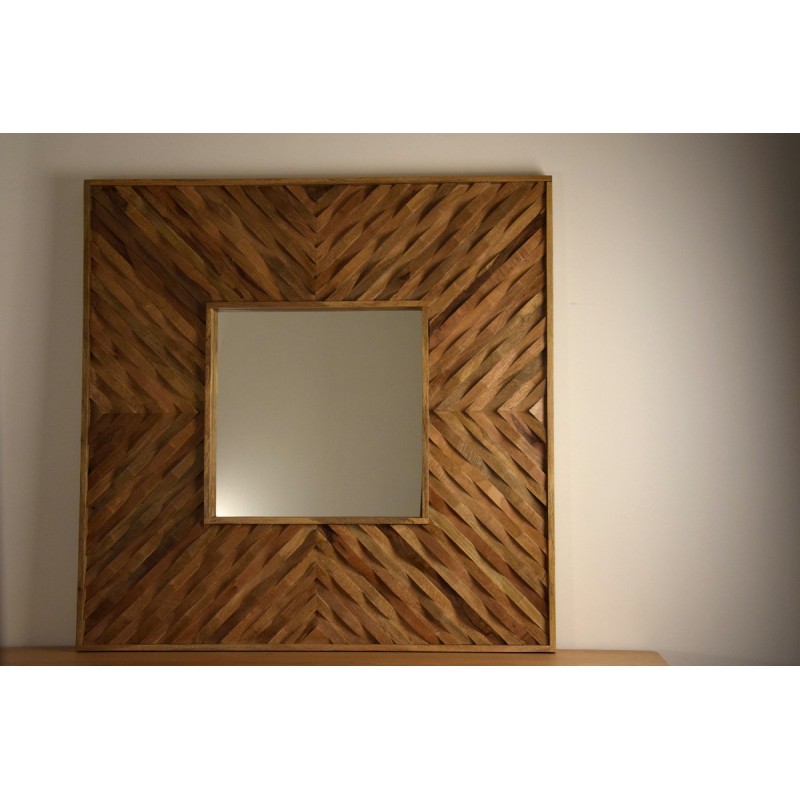 Espejo cuadrado con marco realizado en madera trabajada a mano. madera color natural