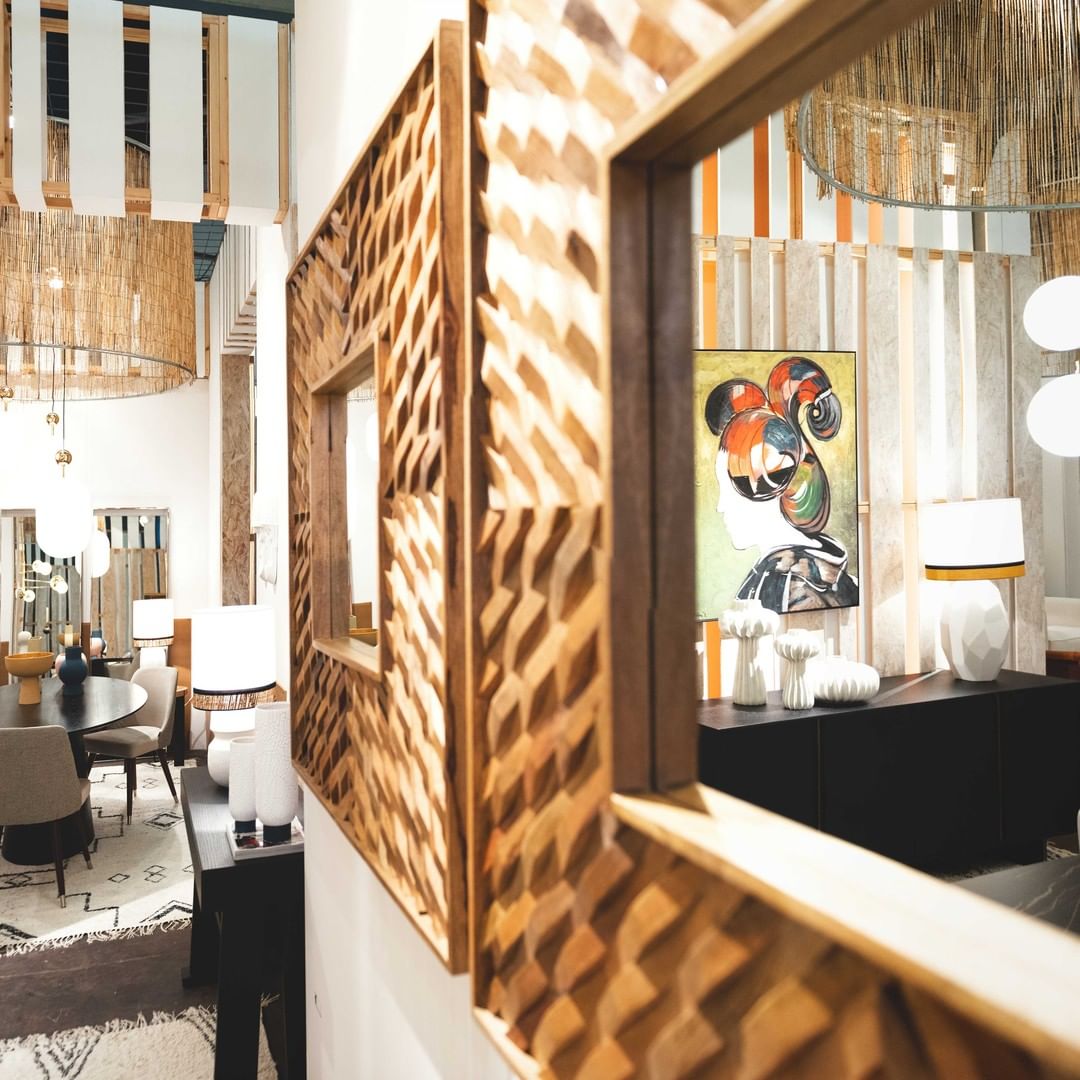 Espejo cuadrado marco madera mango maciza color natural VP Interiorismo