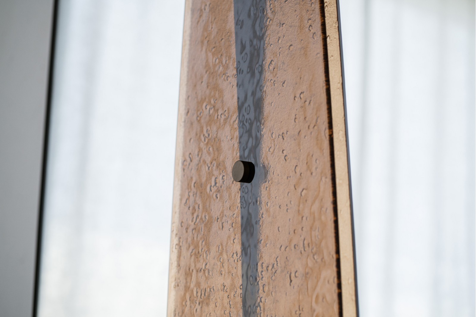 LA PIEZA CREA UN JUEGO VISUAL DE REFLEJOS Y TRANSPARENCIAS QUE APORTA PROFUNDIDAD Y CALIDEZ AL ESPACIO.