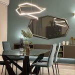 Espejo con marco poliédrico de acero pulido alto brillo.
