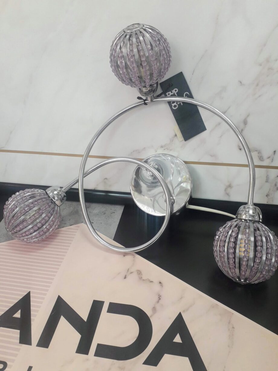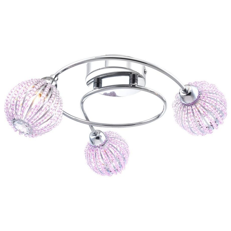 VIOLA: Espiral cromo de tres esferas malva para bombillas Led g9, 56103-3 Globo Lighting. 35cm. STOCK DISPONIBLE EN TIENDA