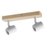 ETNIA: Regleta de dos focos madera y portalámparas blanco para bombilla E27, 5002 Mdc. STOCK EN TIENDA