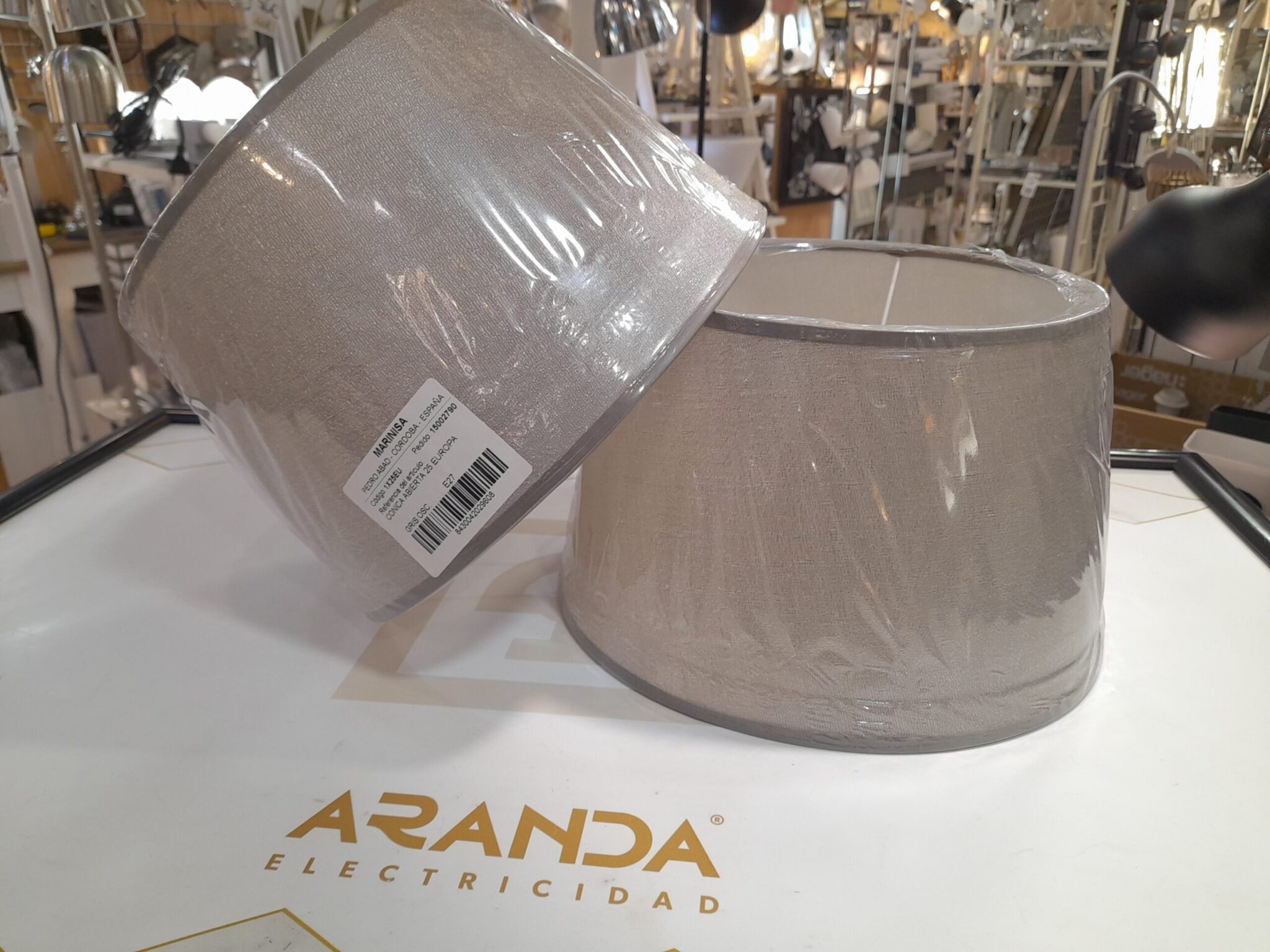 EUROPA: Pantalla tela gris ligero brillo, Marinisa. 25cm diámetro en E27, forma cónica abierta. DISPONIBLES EN TIENDA