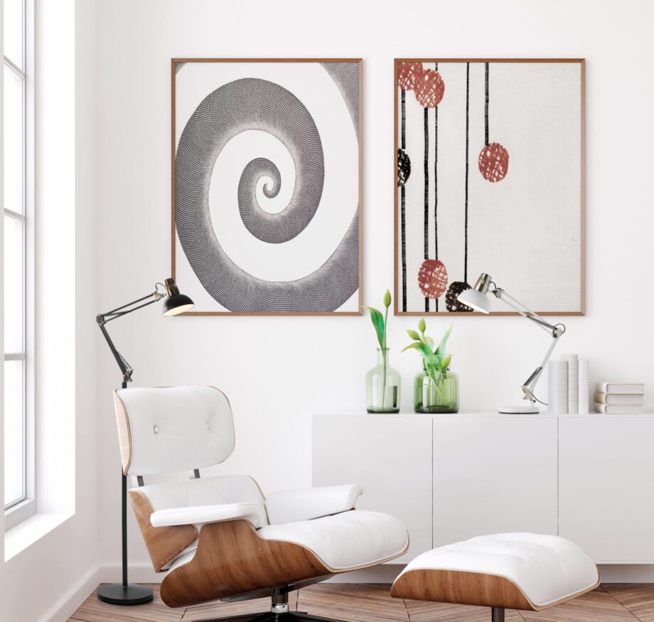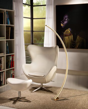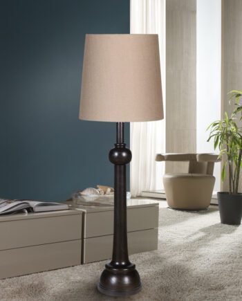 Lámpara de pie en negro y cuero.