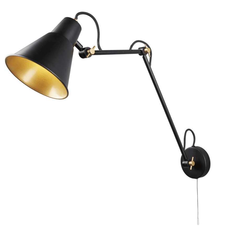 Flexo de pared Negro con Oro interior articulado, 7403Bk Searchlight. STOCK DISPONIBLE EN TIENDA