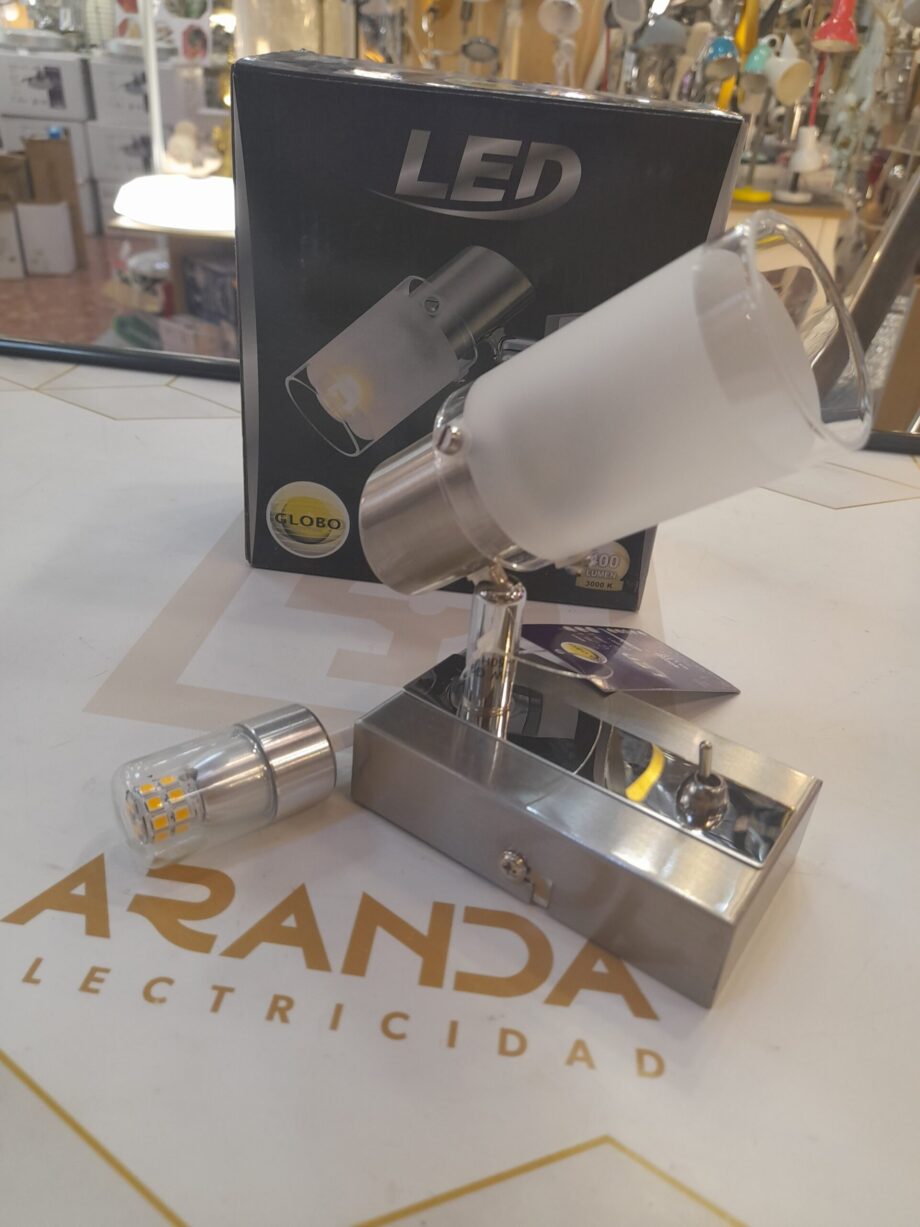 JILL: Foco orientable con tulipa cristal e interruptor incorpodado, con bombilla g9 Led incluida, 56021-1 Globo. STOCK DISPONIBLE EN TIENDA