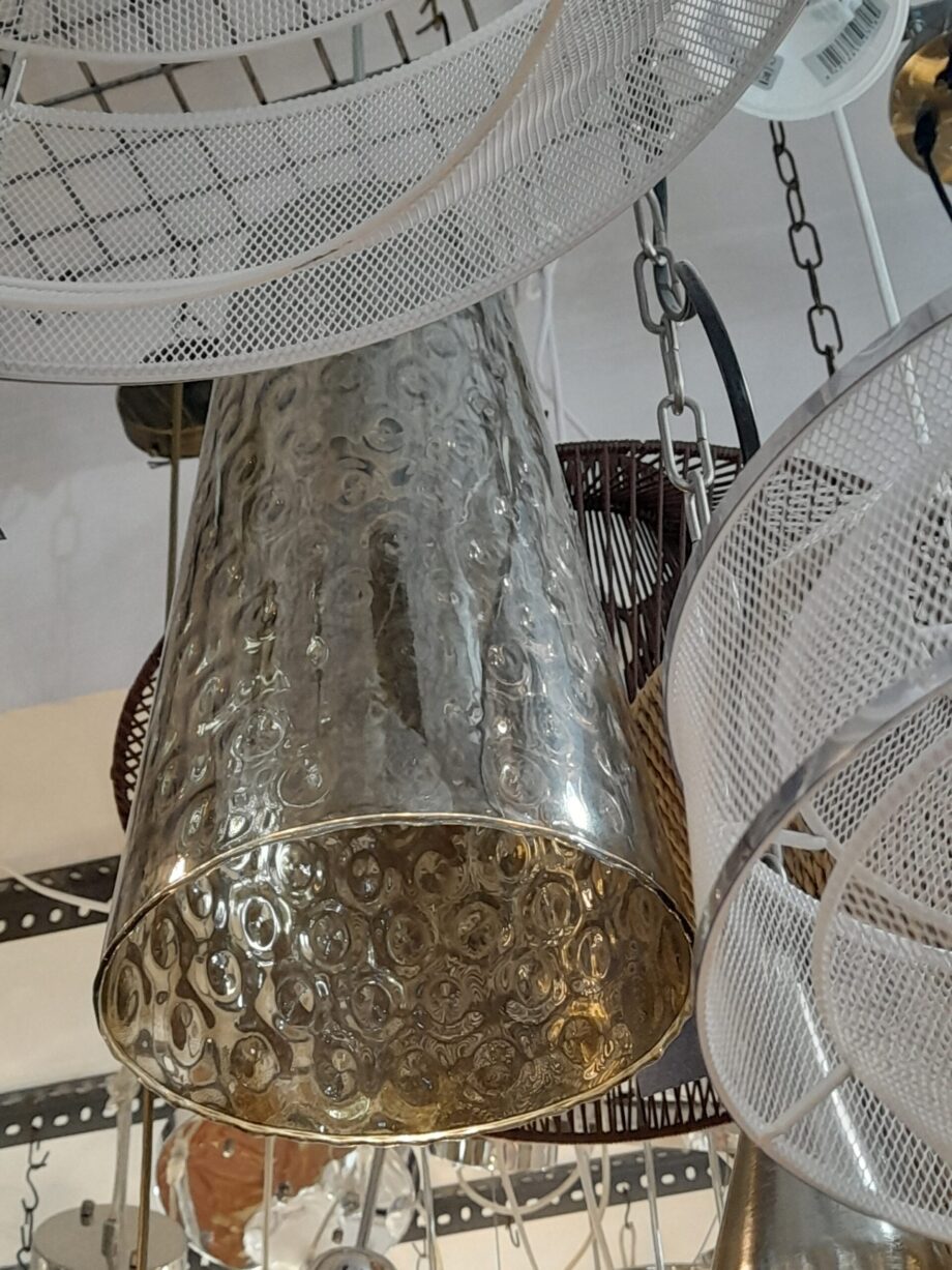 Colgante de cristal de 20 centímetros de diámetro con apertura inferior.