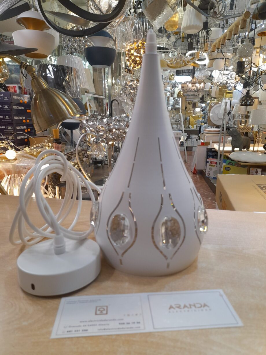 IBIZA: Colgante cónico blanco, interior blanco con cristales transparente, V1551 Anperbar. 18cm. Con 250cm cable blanco. STOCK DISPONIBLE EN TIENDA