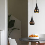 IBIZA: Colgante cónico negro, interior oro con cristales ámbar, V1551 Anperbar. 18cm. Con 250cm cable negro. STOCK DISPONIBLE EN TIENDA