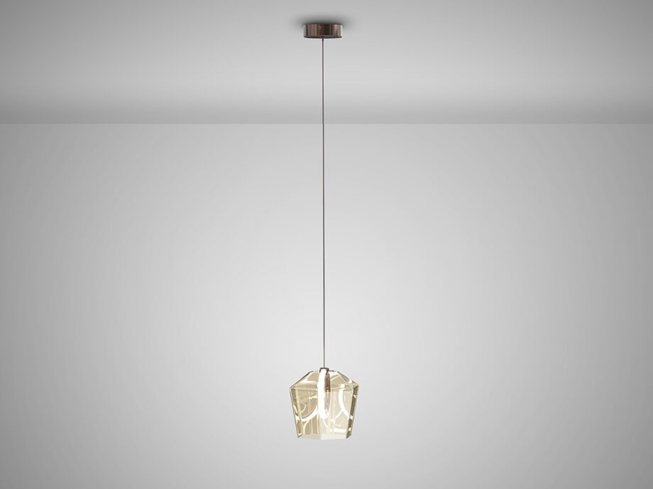 INGRID - Colgante individual cristal champán y bronce de 6W Led