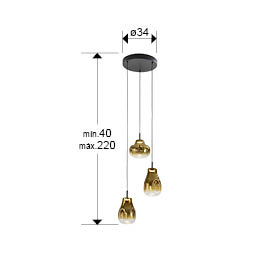 Lámpara ALEDIS negra con 3 colgantes oro de 18W Led Schuller