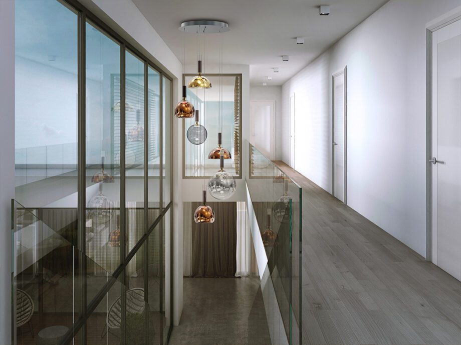 Tulipas de cristal con baño electrolítico en tonos latón antiguo, ámbar, plata y transparente, con luz LED y difusor de acrílico opal.