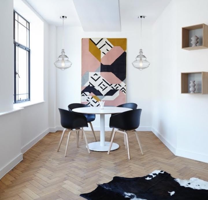 Con cable transparente para su regulación en altura. Florón metálico blanco.