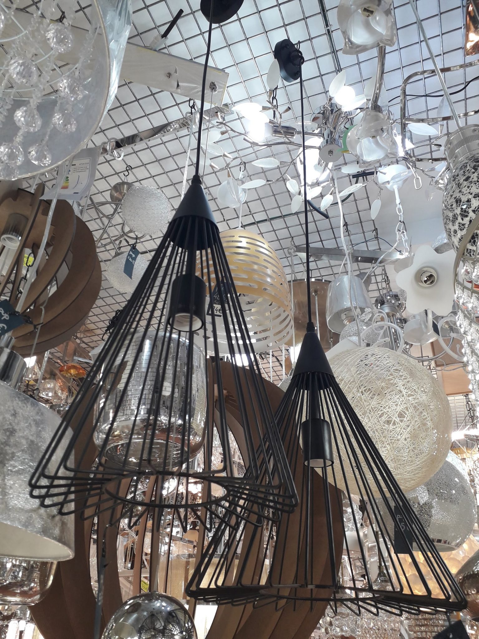 Geométrica de varillas negras en forma cono ancho. Ideal para composiciones de colgantes.