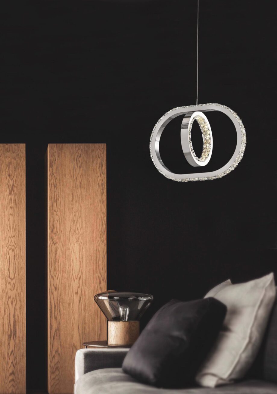 Lámpara colgante MONACO cromo con cristales 17w Led Acontract.