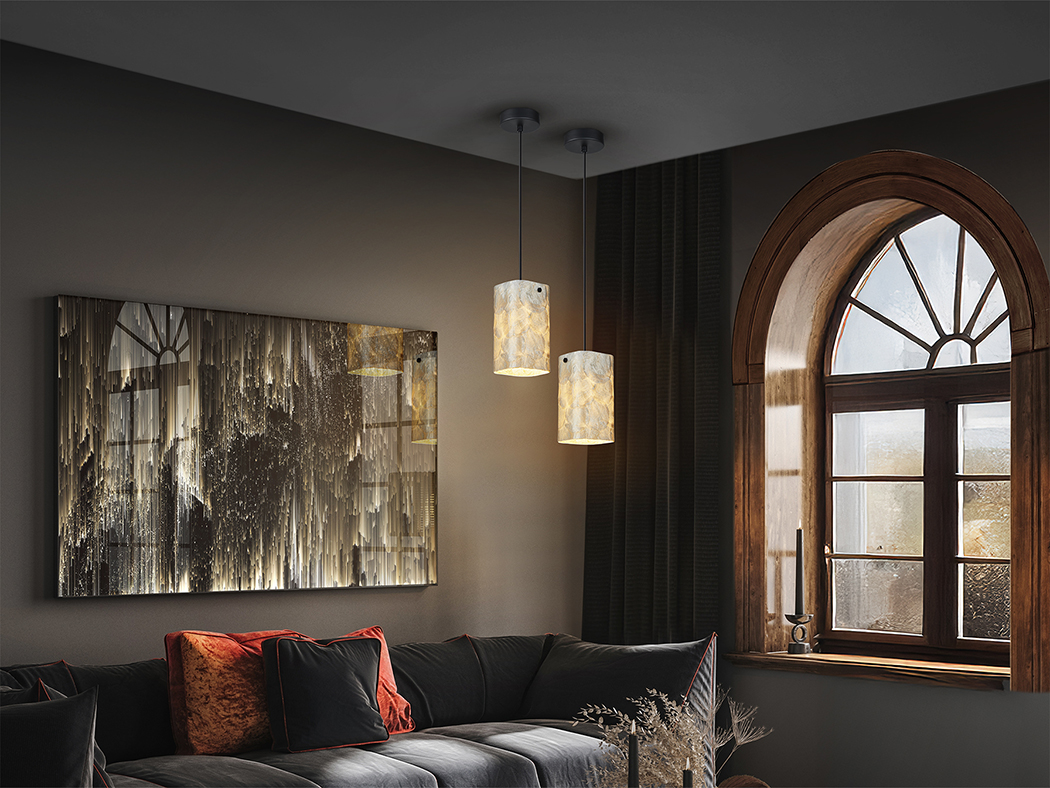 Lámpara colgante NAKAR negro con tulipa nácar bombilla Led E14 Schuller