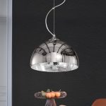 Lámpara de campana de cristal en color cromo con interior en mosaico espejo de efecto metálico brillante.
