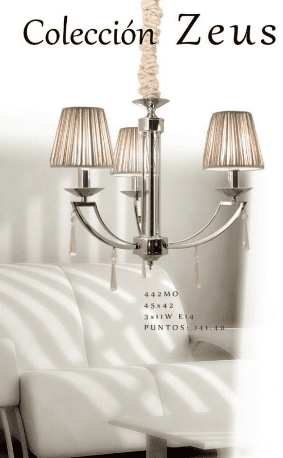 ZEUS: Lámpara cromo con pantallas, 442 Marinisa. Para 3 bombillas E14. DISPONIBLE EN TIENDA
